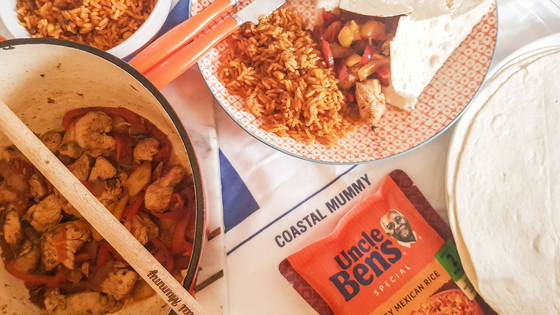Dinner to us is a time to catch up, relax and reflected on our day. It is a time away from work, stress and even technology. It’s family time. It is important and Elsa and Cleo love having a catch up with Daddy and tell him all their adventures. Elsa helps me cook from time to time too so it is bonding time for us and Elsa is always proud of the end result. Our favourite thing as a family to eat is Chicken. Pretty much anything with Chicken in it so it is must for us to have a good variety of meals that we know we can cook and that we love. With help from Uncle Ben’s and their Mexican rice I am going to show you how to make our special family sharing fajitas.