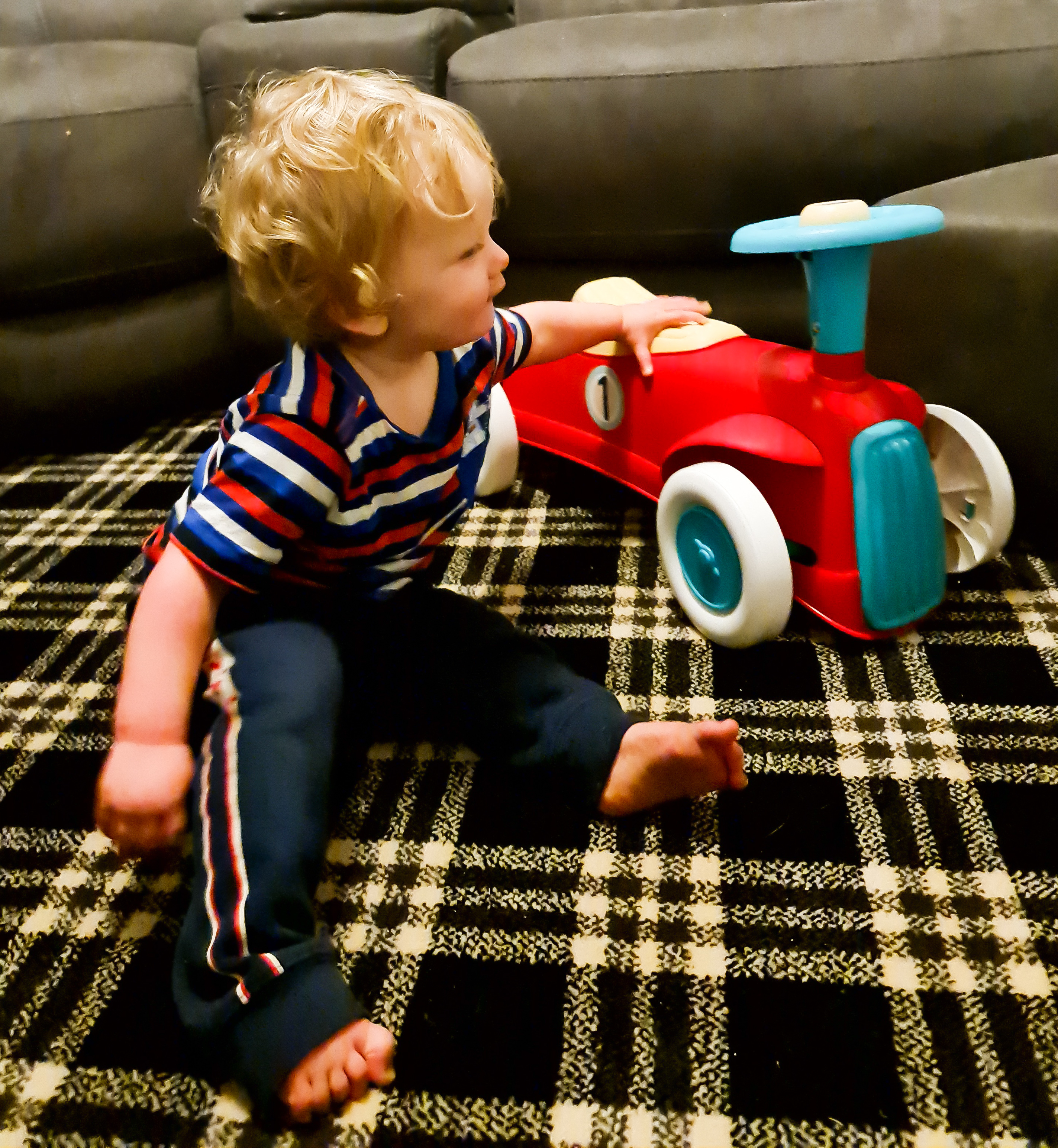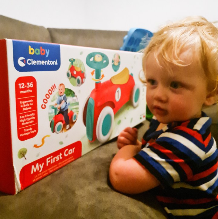 This is Brody’s first ride on car. It is something that we have been meaning to get him. He is not quite walking unaided yet but is getting there so a ride on car like this one is great to encourage him.