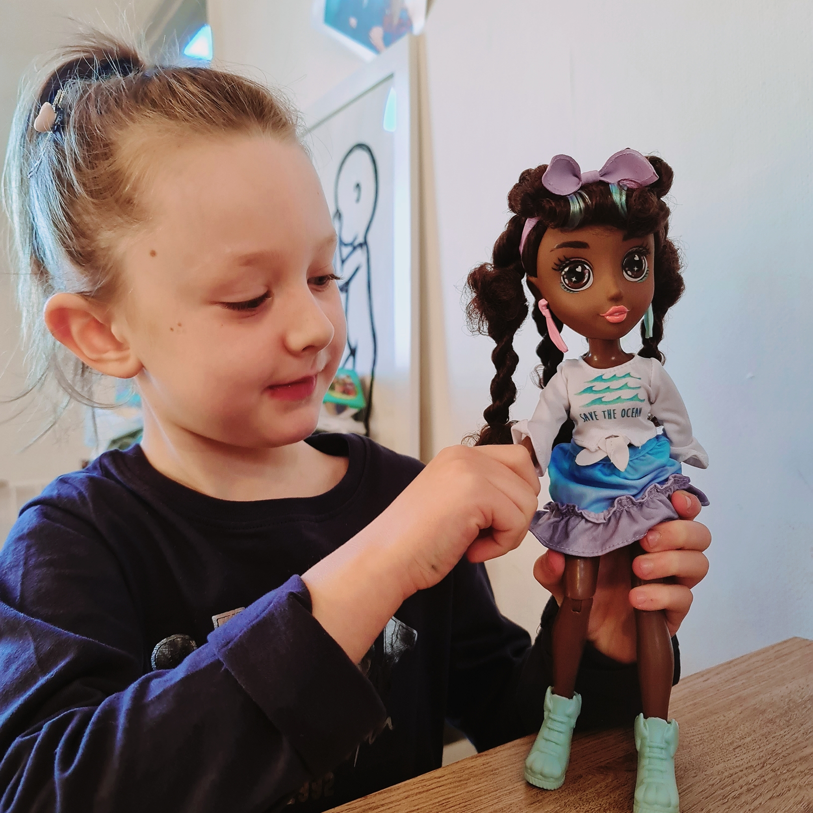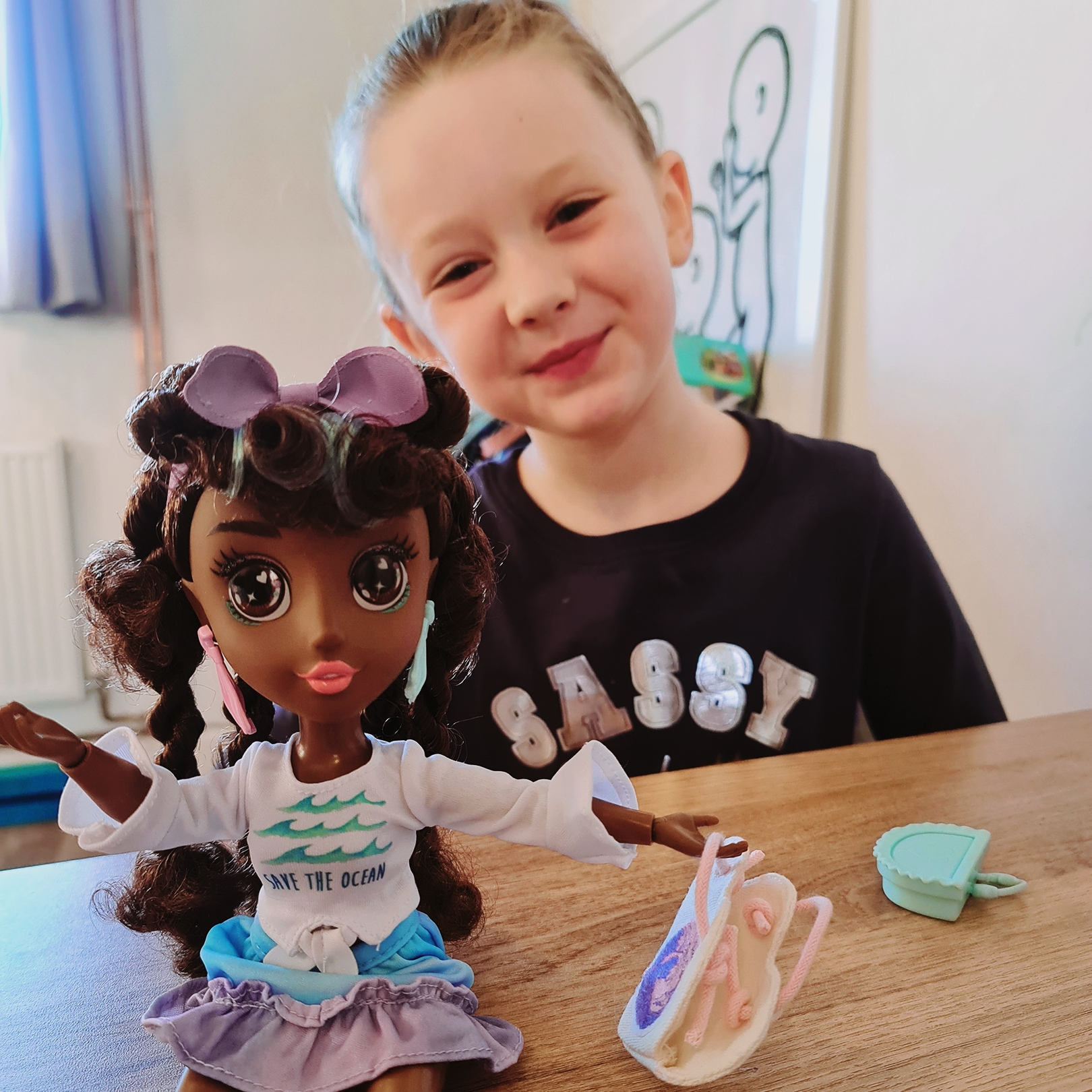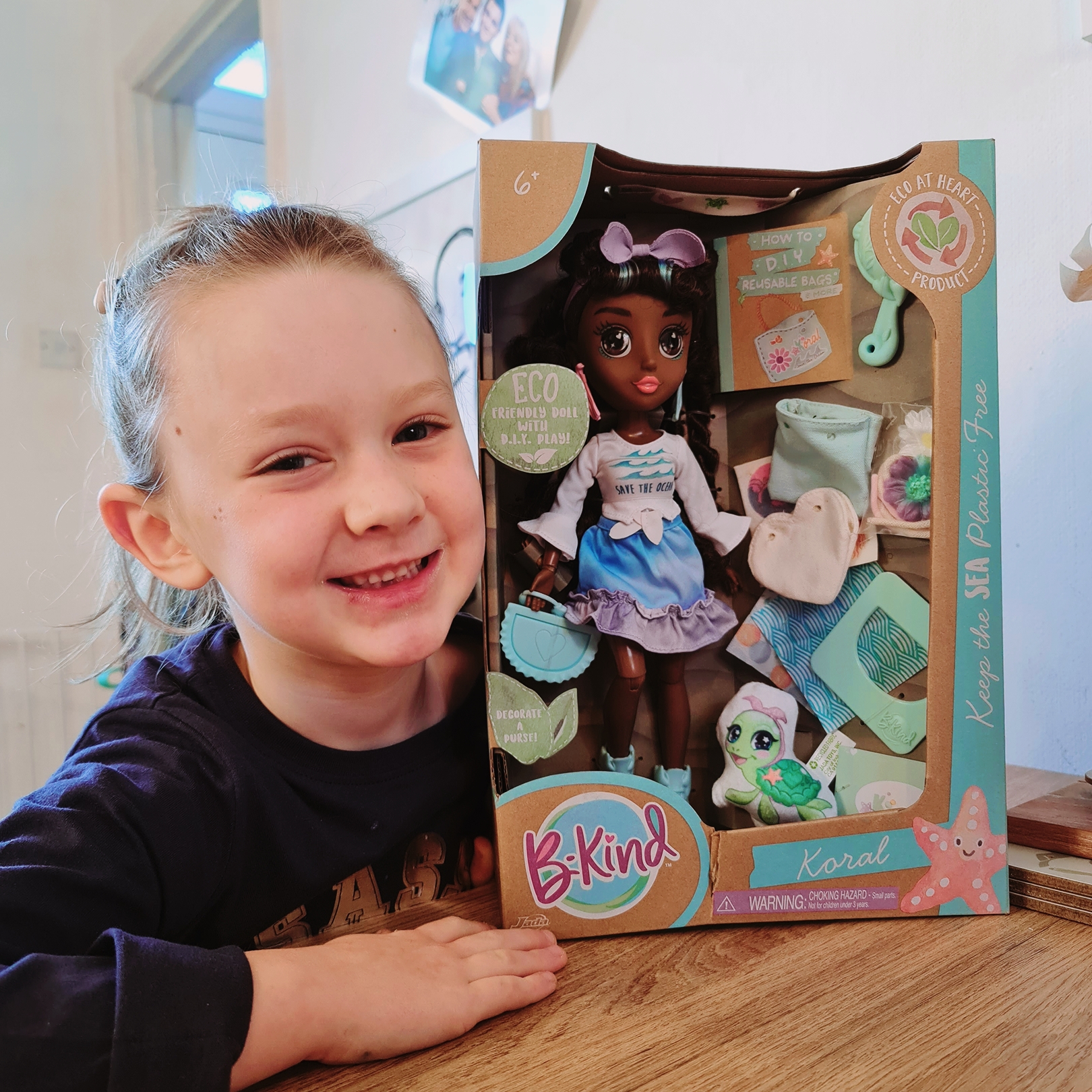 Elsa received Koral which fits perfectly as we are by the sea. Korals motto is ‘Keep the sea plastic free.’ and we could agree more. It seems with the B-Kind dolls that the ways to play are endless. Everything has been carefully thought about and nothing that comes with the doll is not used in play. Each 31cm doll comes with an outfit and accessories, a DIY activity and a pillow pet friend- Koral’s is a turtle! Koral encourages children to care for the oceans and keep them clean.